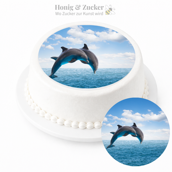 Mit einem „Blau Delphin“ Tortenaufleger wird jede Torte zu einem echten Hingucker. Wir drucken wir ihn auf essbare Oblate oder Zuckerpapier. Dadurch entsteht eine einzigartige Tortendekoration. Diese ist perfekt auf den jeweiligen Anlass abgestimmt.