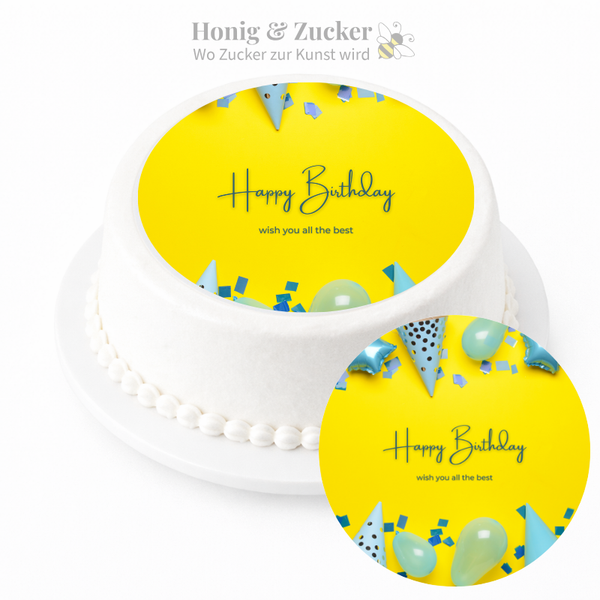 Der personalisierte „Gelbe Fun“ Tortenaufleger macht schließlich jeden Anlass zu einem besonderen Highlight. Er sorgt stets für eine individuelle und festliche Dekoration.
