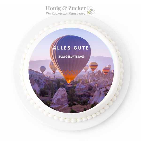Mit einem „Heissluftballon“ Tortenaufleger wird jede Torte zu einem echten Hingucker. Wir drucken wir ihn auf essbare Oblate oder Zuckerpapier. Dadurch entsteht eine einzigartige Tortendekoration. Diese ist perfekt auf den jeweiligen Anlass abgestimmt.