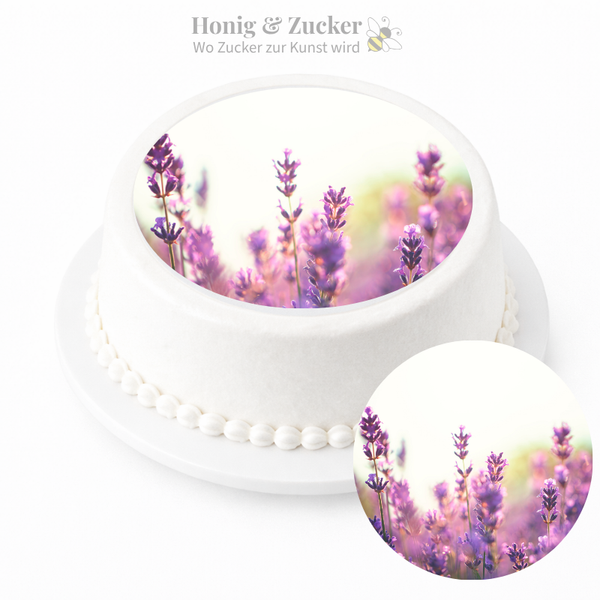 Mit einem personalisierten „Lavendel“ Tortenaufleger wird jede Torte zu einem echten Hingucker. Wir drucken wir ihn auf essbare Oblate oder Zuckerpapier. Dadurch entsteht eine einzigartige Tortendekoration. Diese ist perfekt auf den jeweiligen Anlass abgestimmt.