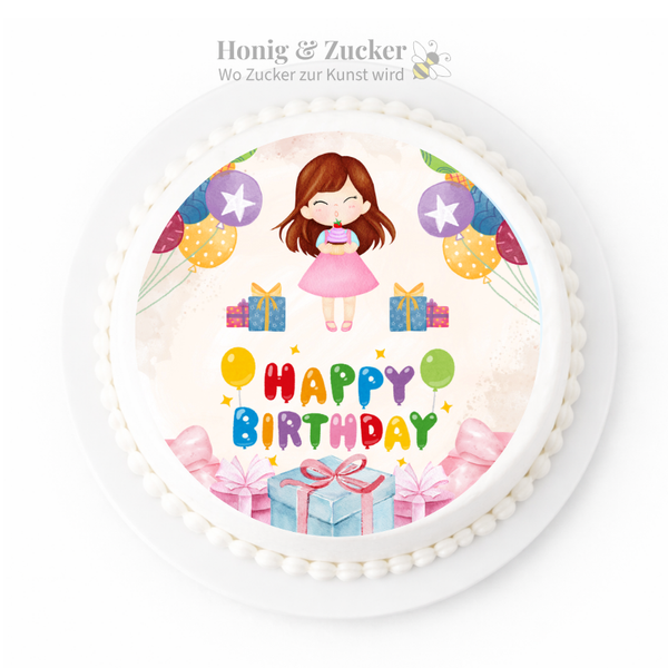 Der Druck erfolgt mit lebensmittelechten Farben auf hochwertiger essbarer Tortenfolie. Alle verwendeten Materialien bestehen aus essbaren Zutaten und sind ideal für die Tortendekoration geeignet.