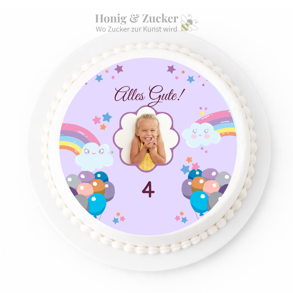 Mit einem personalisierten „Regenbogen Geburtstag“ Tortenaufleger wird jede Torte zu einem echten Hingucker. Zudem wird der Aufleger individuell mit Name, Alter und Foto gestaltet. Danach drucken wir ihn auf essbare Oblate oder Zuckerpapier. Dadurch entsteht eine einzigartige Tortendekoration. Diese ist perfekt auf den jeweiligen Anlass abgestimmt.