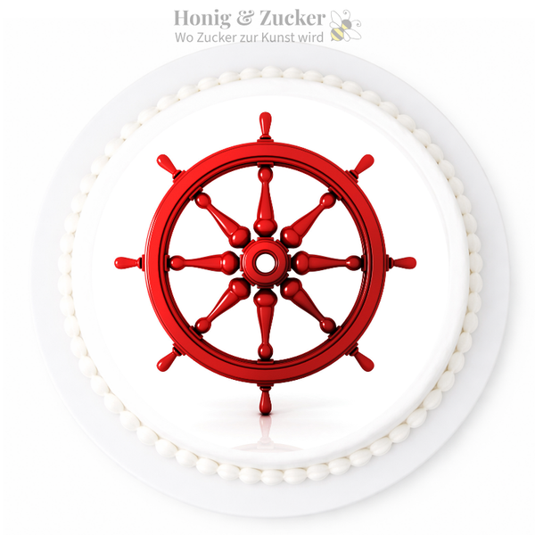 Mit einem personalisierten „Schiffsrad“ Tortenaufleger wird jede Torte zu einem echten Hingucker. Wir drucken wir ihn auf essbare Oblate oder Zuckerpapier. Dadurch entsteht eine einzigartige Tortendekoration. Diese ist perfekt auf den jeweiligen Anlass abgestimmt.