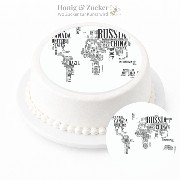 Alternativ können Sie auch fertige Designs entdecken: Weltkarte Tortenaufleger auf Amazon ansehen